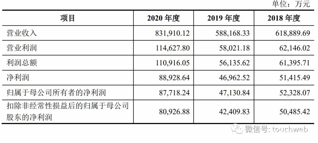 招股书显示,圣泉集团2018年、2019年、2020年营收分别为61.89亿元、58.82亿元、83.19亿元;净利润分别为5.14亿元、4.7亿元、8.89亿元。