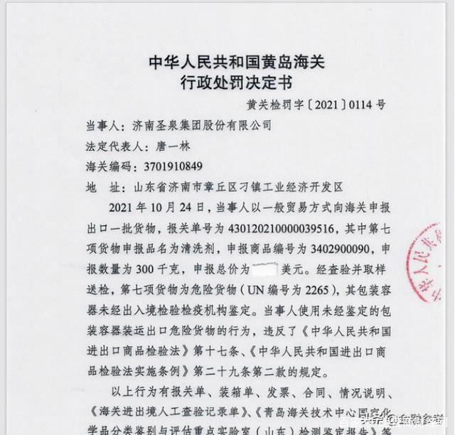 但在今年1月,圣泉集团因存在使用未经鉴定的包装容器装运出口危险货物的行为,受到了海关部门的行政处罚。