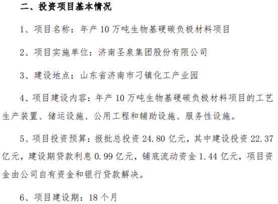 项目名称:年产10万吨生物基硬碳负极材料项目