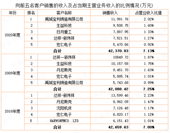 该公司的客户较分散,2018年以来对前五大客户的销售额占营业收入的比重不到10%。
