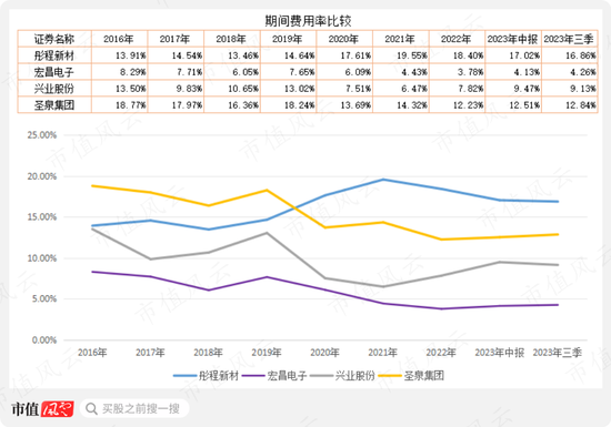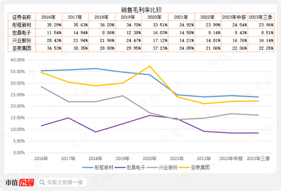 宏昌电子则是在2016年至2022年呈现明显上市趋势,但在今年大幅下降,前三季度为2.5%。