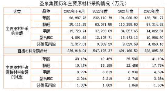 圣泉集团主要原材料为苯酚、糠醛、甲醇、等大宗商品,价格随行就市,波动较大。
