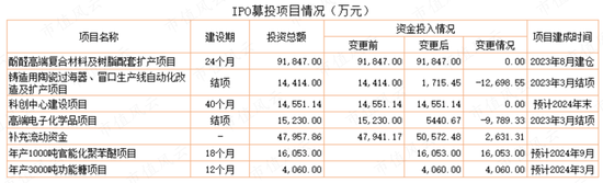 高端电子化学品项目在2023年3月结项,今年底前投产;2023年8月,酚醛高端复合材料及树脂配套扩产项目已建成投产;其他未结项目正在有序推进中。