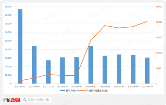 该公司的股东户数持续减少,截至2023年三季度末股东户数降至30471户,户均持有流通股数上升20190股,对应持仓市值约47万元。