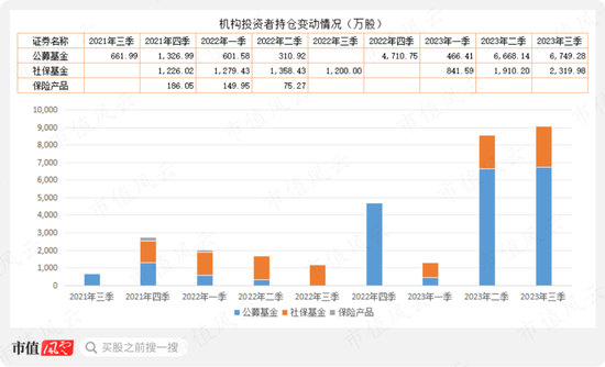 或许正是基于该公司韧性较强的业绩表现,也或许是看了市值风云的评分排名,公募基金、社保基金在今年前三季度明显加仓该公司股票。