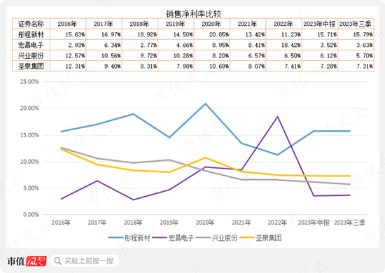 宏昌电子净利率变动较大,但2023年前三季度为3.6%,较2022年下降非常大。