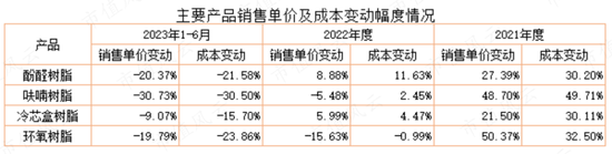 其中,酚醛树脂、环氧树脂销售单价均在20%左右;呋喃树脂的生产成本和销售单价降幅均超过30%。