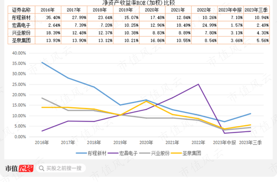 圣泉集团与兴业股份两家公司的净利率都出现下降趋势,2021年以来都在7%实现水平。