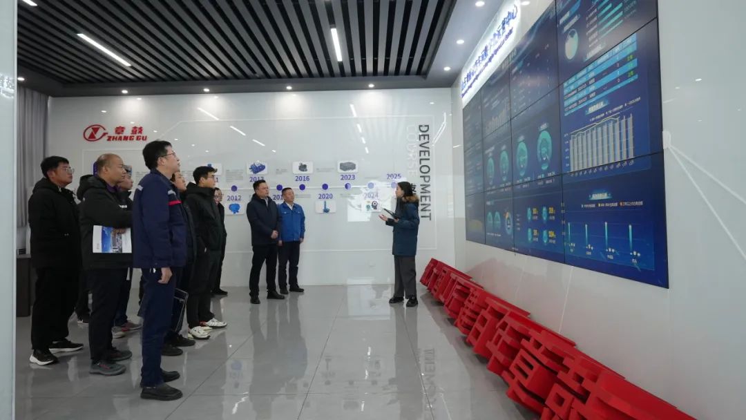 交流期间,圣泉集团对章鼓逐年发展“更节能、更低噪声、更智能、更少消耗”为导向的新产品加以赞赏和认可,并实地参观了山东章鼓智能化标杆车间及设备状态监测运营大厅。在这里,智能机器人穿梭不息,生产线上的设备通过物联网技术与控制系统紧密相连,实现了生产过程的透明化、可视化管理。运营大厅内,大屏幕实时看护着设备运行状态,任何微小异常都难逃系统的“法眼”,确保了生产的高效与安全。