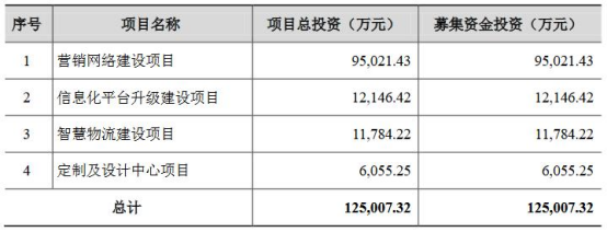 菜百股份本次发行募集资金总额为7.78亿元,扣除发行费用后,募集资金净额为7.23亿元。菜百股份最终募集资金净额比原计划少5.27亿元。菜百股份2020年8月27日报送的招股书显示,公司拟募集资金12.50亿元,分别用于营销网络建设项目、信息化平台升级建设项目、智慧物流建设项目、定制及设计中心项目。