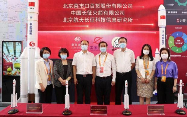 9月1日下午,在2022年中国国际服务贸易交易会现场,中国长征火箭有限公司总裁张东、北京航天长征科技信息研究所所长吴琼与北京菜市口百货股份有限公司总经理王春利共同签署战略合作协议,多方将强强联手研发航天领域的贵金属文创产品。