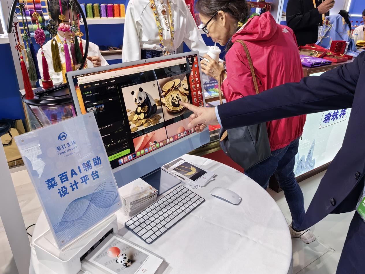 今年以来,菜百股份数字化创新成果屡次亮相于服贸会、进博会、珠宝展等各大国内外展会:自助购物机的使用给顾客带来了更加方便快捷、安全可靠的购物体验;数字人直播通过虚拟人物的呈现和互动,为观众提供了一种全新的娱乐和参与体验;菜百AI辅助设计平台可通过输入文字描述生成含有相应元素的创意首饰图片,是对于AI技术在辅助产品设计方面的一项探索和尝试。