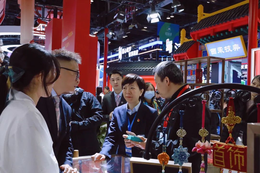 在展示区域中,菜百股份携特色国潮文创产品、数字化转型创新成果、首饰清洗维修鉴定咨询等金质服务以及非遗编织、锤揲工艺展示亮相西城展区。菜百首饰与颐和园、天坛、北海等北京文化地标联名研发的文创IP产品及满载贺岁生肖文化的“抱抱蛇”“小蛇多多”系列产品无不彰显出菜百股份在老字号创新、品牌文化特色提炼、产品创意研发等方面的丰厚成果;展区内自助售卖机及数字人的应用体现了菜百股份在会员体验提升、技术赋能领域的深化探索。