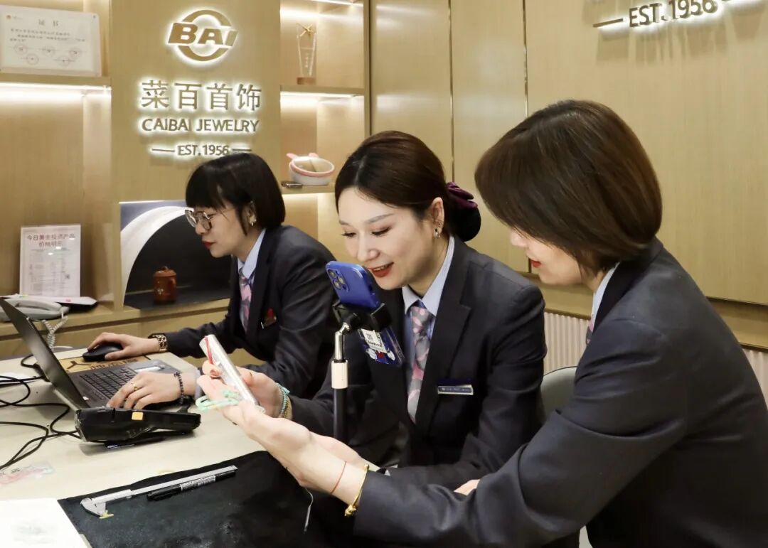 菜百股份 在北京各区及天津、河北、西安、武汉、苏州、包头共有百余家门店,均为全直营连锁门店,同时,菜百电商子公司销售遍布全国,这让菜百首饰在全国范围内,不管线上还是线下,都实施统一的质量标准和服务规范,确保消费者无论在哪家门店都能获得一致的品质体验。