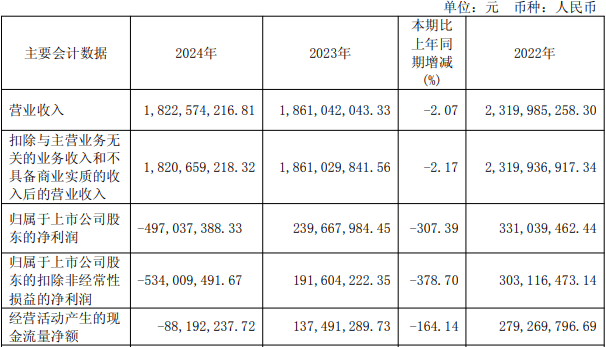 2024年,华兴源创实现营业收入18.23亿元,同比下降2.07%;归属于上市公司股东的净利润-4.97亿元,同比下降307.39%;归属于上市公司股东的扣除非经常性损益的净利润-5.34亿元,同比下降378.70%;经营活动产生的现金流量净额-8819.22万元,同比下降164.14%。
