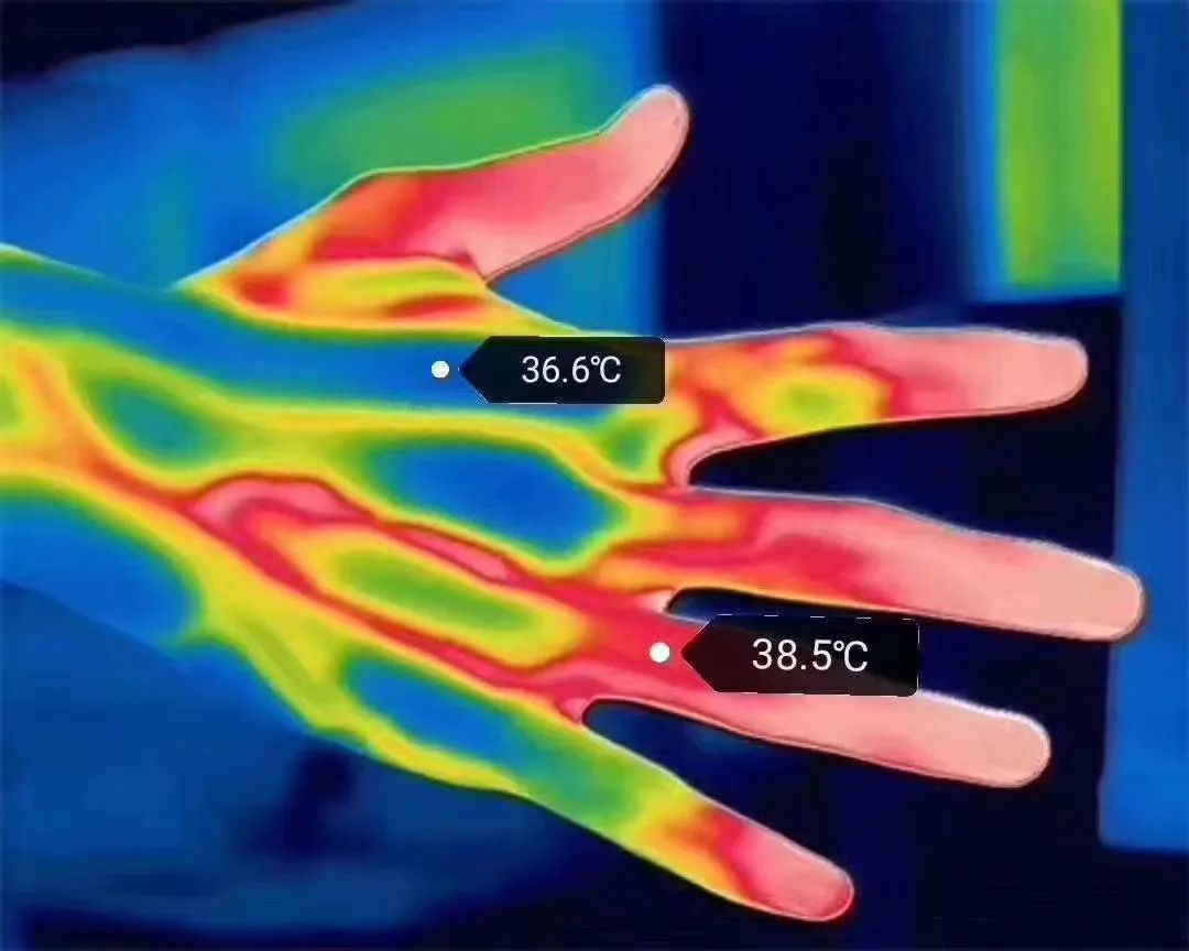 人手在睿创微纳红外热成像仪中的成像效果