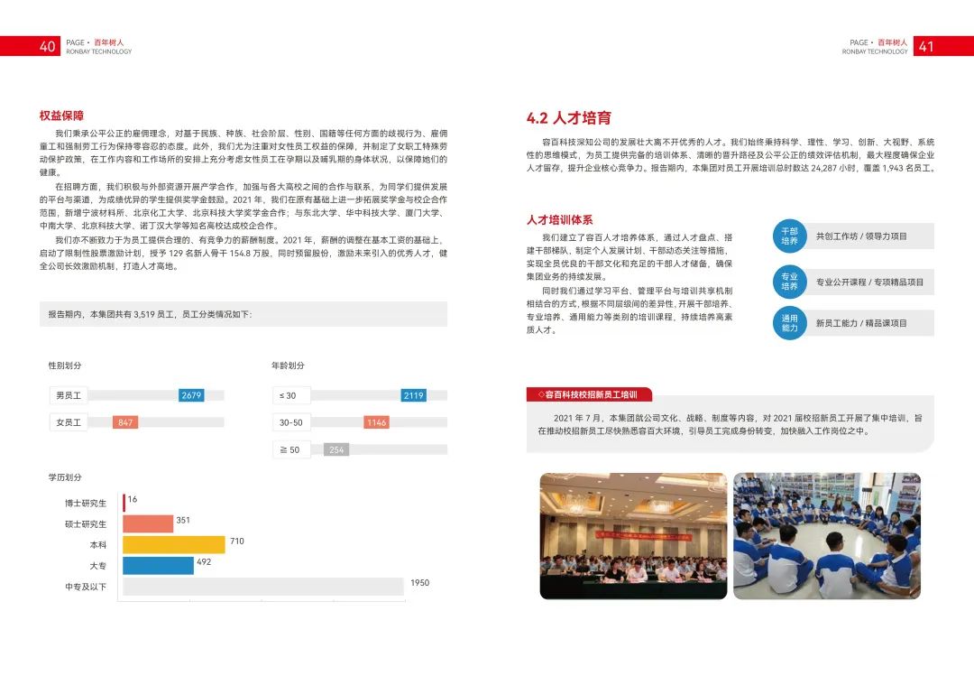 2021年,容百科技开展多项特色培训课程,并积极对接外部专业机构,邀请外部专业人员对员工进行培训,提高员工专业水平及其对企业文化、岗位工作的理解。去年7月,容百科技就公司文化、战略、制度等内容,对2021届校招新员工开展了集中培训,旨在推动校招新员工尽快熟悉容百大环境,引导员工完成身份转变,加快融入工作岗位之中。
