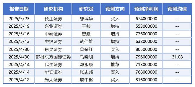 其中,评级方面,4家机构认为“买入”,4家机构认为“增持”,1家机构认为“推荐”。