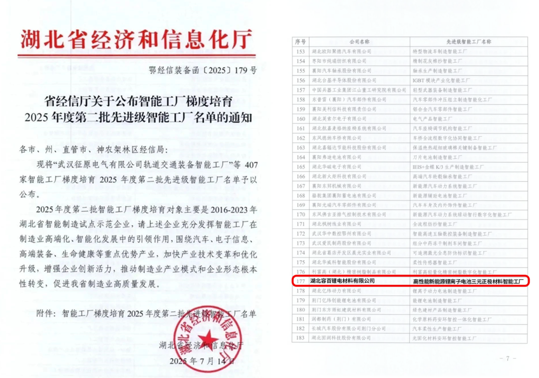 近日,容百科技旗下子公司湖北容百喜讯频传,凭借在绿色发展与智能制造领域的突出实践,成功入选2025年湖北省绿色供应链管理企业名单,并跻身湖北省智能工厂梯度培育2025年度第二批先进级智能工厂行列。这两项省级荣誉不仅是对湖北容百过往努力的高度认可,更彰显了容百科技作为新能源材料行业领军者的强大实力与前瞻布局。