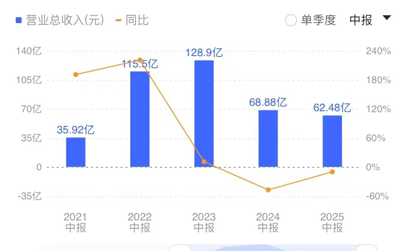 锂电池三元正极材料企业容百科技最新半年报显示,2025年上半年,公司营收62.48亿元,同比下滑9.28%;归属于上市公司股东的净利润-6,839.46 万元,同比下降 765.45%,为2019年上市以来同期首亏。