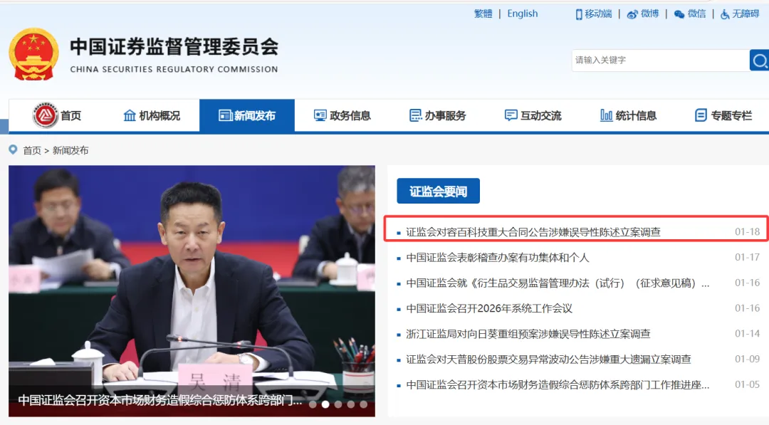 监管动作迅速,上交所连夜下发问询函要求补充披露具体执行细节,并在容百连续停牌后,中国证监会于1月18日发布立案调查公告,称容百科技重大合同公告涉嫌误导性陈述。这一调查标志着监管层对锂电材料合同信披合规性的高度关注。