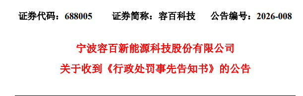2月6日晚,容百科技公告,公司收到中国证监会宁波监管局下发的《行政处罚事先告知书》。
