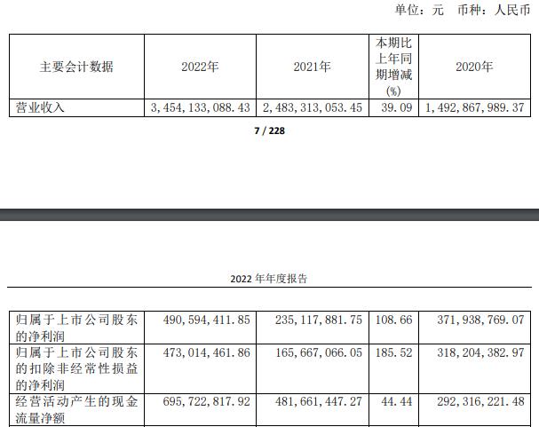 杭可科技2022年年度报告显示,2022年,杭可科技实现营业收入34.54亿元,同比增长39.09%;归属于上市公司股东的净利润4.91亿元,同比增长108.66%;归属于上市公司股东的扣除非经常性损益的净利润4.73亿元,同比增长185.52%;经营活动产生的现金流量净额6.96亿元,同比增长44.44%。