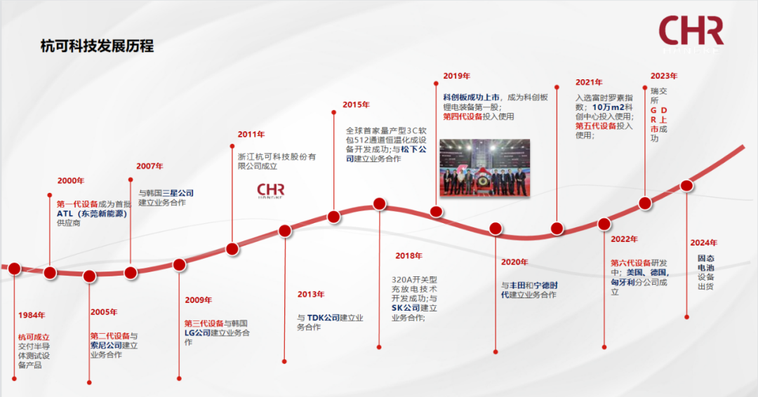 上市后的杭可科技,在辉煌与挑战交织的道路上砥砺前行,在技术研发方面,公司继续加大投入,聚焦新一代智能化成分容设备、高效能量回收系统、固态电池加压化成分容设备等前沿技术。这些技术的突破不仅提升了公司的核心竞争力,更为公司未来的发展提供了强大的技术支撑。在市场拓展方面,公司巩固与现有客户的合作关系,积极开拓新兴市场。固态电池目前已与多家国内外战略客户开展紧密合作。特别是在“双碳”目标的推动下,全球新能源汽车和储能市场发展潜力巨大。杭可科技抓住这一机遇,加大在欧洲、北美、亚洲等地区的市场推广力度,出现很多新的业务增长点。