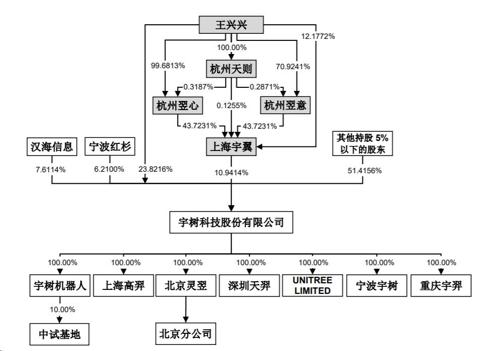 IPO 前,王兴兴直接持有公司 8671.5 万股股份,占公司股本总额的 23.82%,系公司控股股东。同时,在表决权差异安排下,王兴兴直接持股部分的表决权比例为 63.55%,结合所控制的上海宇翼股权激励持股平台,合计控制的公司表决权比例为 68.78%。由此,王兴兴为公司的控股股东、实际控制人。