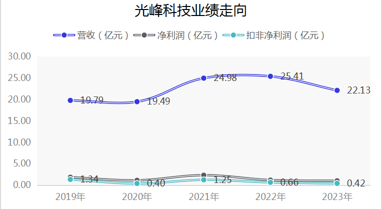 从上市后提交的五份年报来看,光峰科技营收整体增长,不过盈利却出现明显下滑。需要指出的,2022年、2023年,光峰科技扣非净利润同比增速分别录得:-47.85%、-37.18%。