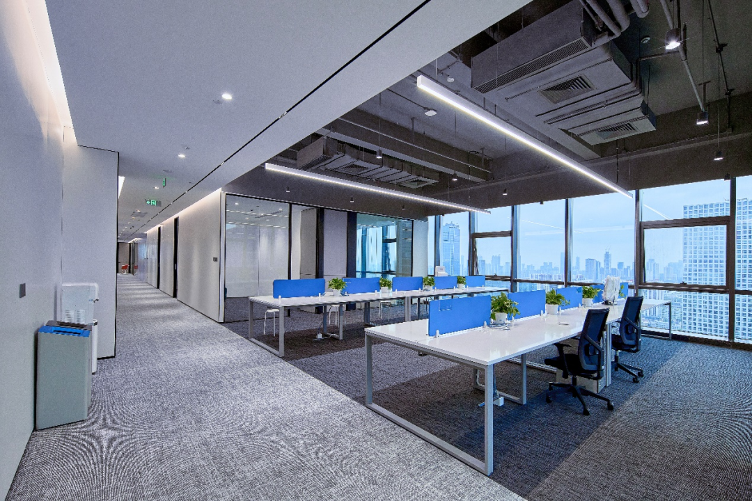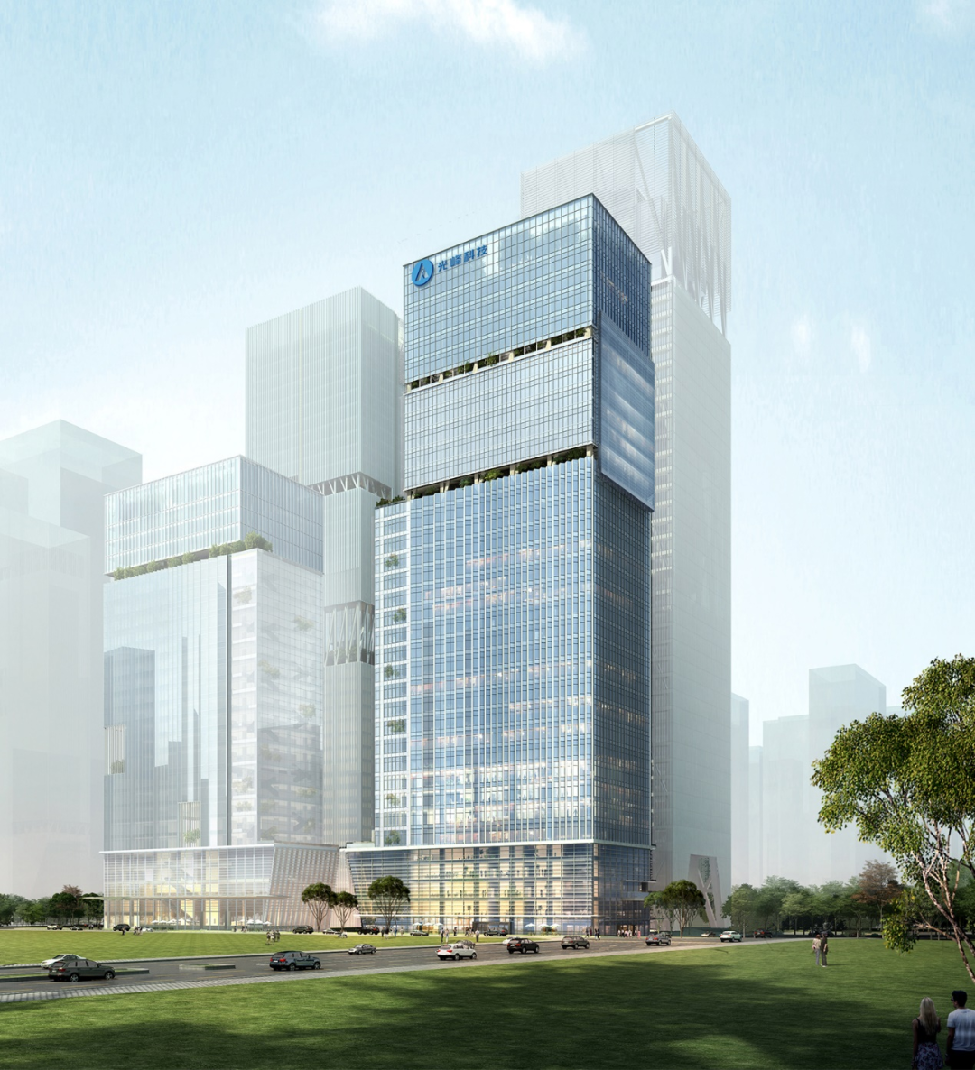 大厦外立面采用航空级钛锌复合板与全幅智能调光幕墙系统,流线型造型彰显极具未来感的科技美感。大厦内,则聚焦员工工作便捷性和休息体验,除通过玻璃幕墙为办公环境提供充足的自然采光外,还设置开放式办公空间,打破了员工间的交流壁垒。此外,大厦顶层配置了270°环幕观景平台,能直观欣赏周围环绕的西丽水库、塘朗山公园等自然景观。