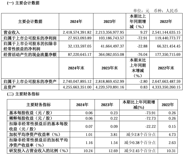 (2)2024年度非经常性损益较上年同期下降,主要系公司计入当期损益的政府补助较去年同期减少2,795.57万元,参股公司转为以公允价值计量的其他非流动金融资产核算确认投资损失3,780.59万元。