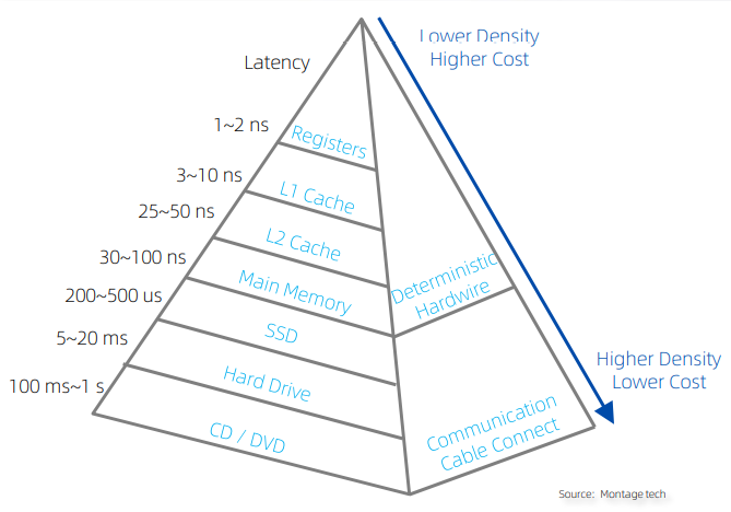 从经济性的角度来看,现有的DDR内存延时低,但是成本较高,市场上出现了一些新的存储介质,虽然延迟比较大,性能比较差,但是成本很低。如果系统能够支持不同的存储层级,意味着成本上面可进行一些优化。
