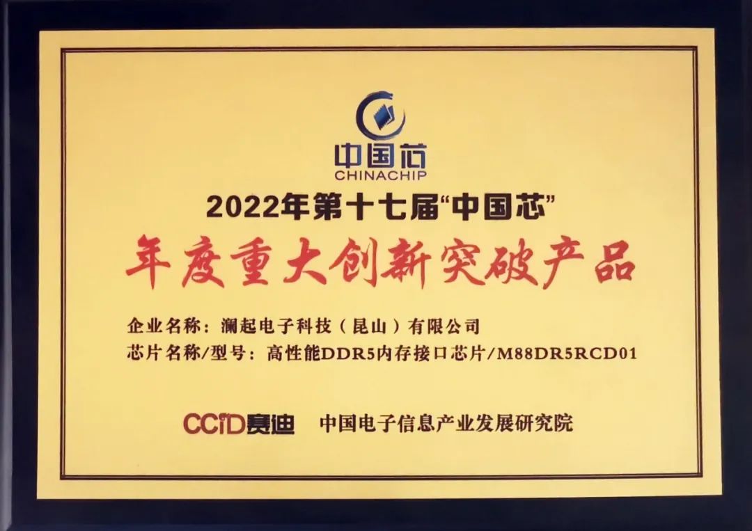 近日,第十七届“中国芯”颁奖仪式在珠海隆重举行。澜起科技高性能DDR5内存接口芯片凭借突破性的技术创新度、优异的市场表现力荣获中国芯“年度重大创新突破产品”奖。