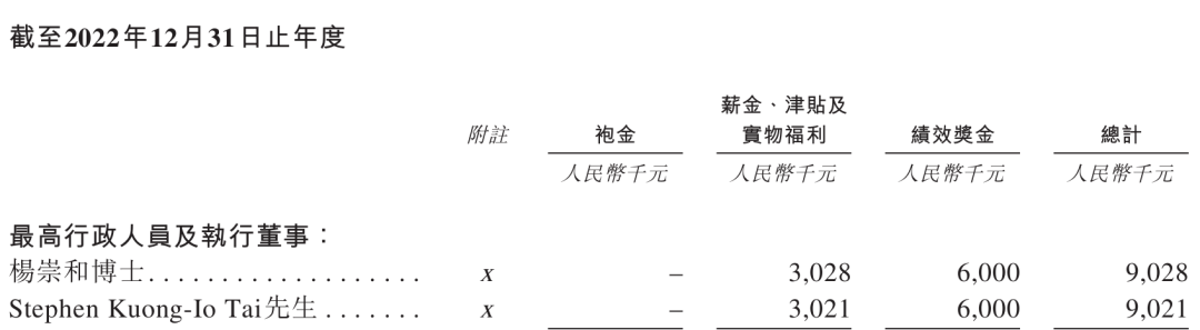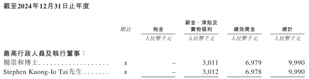 招股书显示,2022年至2025年一季度(以下简称:报告期),杨崇和的薪酬分别为902.8万元、802.5万元、999万元、265.1万元,合计2969.4万元。同期,Stephen Tai总共拿走2970万元薪酬。