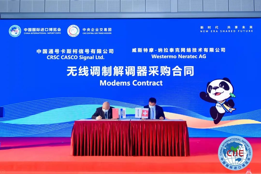 会上,中国通号交易分团与来自德国、瑞士、奥地利等国企业就计轴系统、贴片机、无线调制解调器、板卡、中继器、交换机等物资设备进行了现场签约。