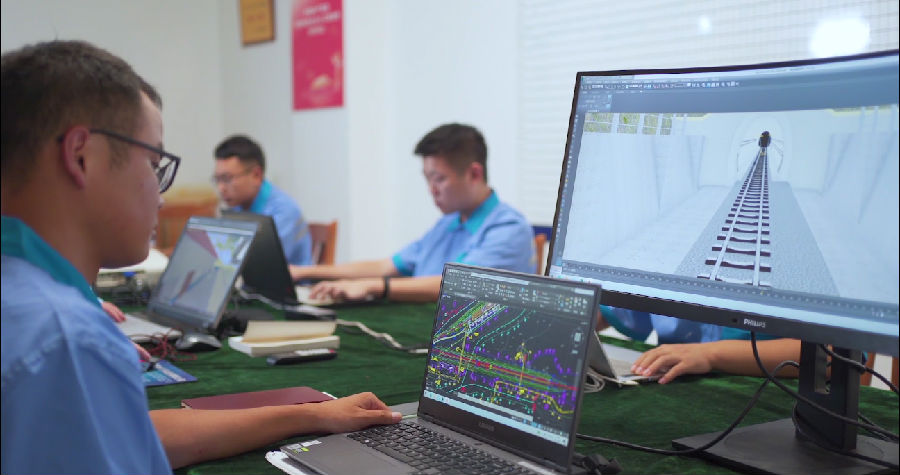 中国通号始终坚持“一线一标准、一线一提升”的创新发展理念,瞄准“玉磨铁路站后标志性示范工程新标杆”建设目标,建立预配中心,创新工艺工法,全面提升施工安装精准度和效率;增强创新性技术应用,采用BIM+VR技术,实现设计规划、施工安装一体化,采用施工实名管理及质量二维码系统,实现物资设备管理信息化,进一步提升项目管理水平。依托劳模创新工作室,针对现场情况创新优化工艺20项,推动工程建设由标准化、规范化进一步迈向精益化。研发应用新设备、新技术,促进铁路建造技术水平和装备质量不断升级,以创新科技实现“智慧”建造。