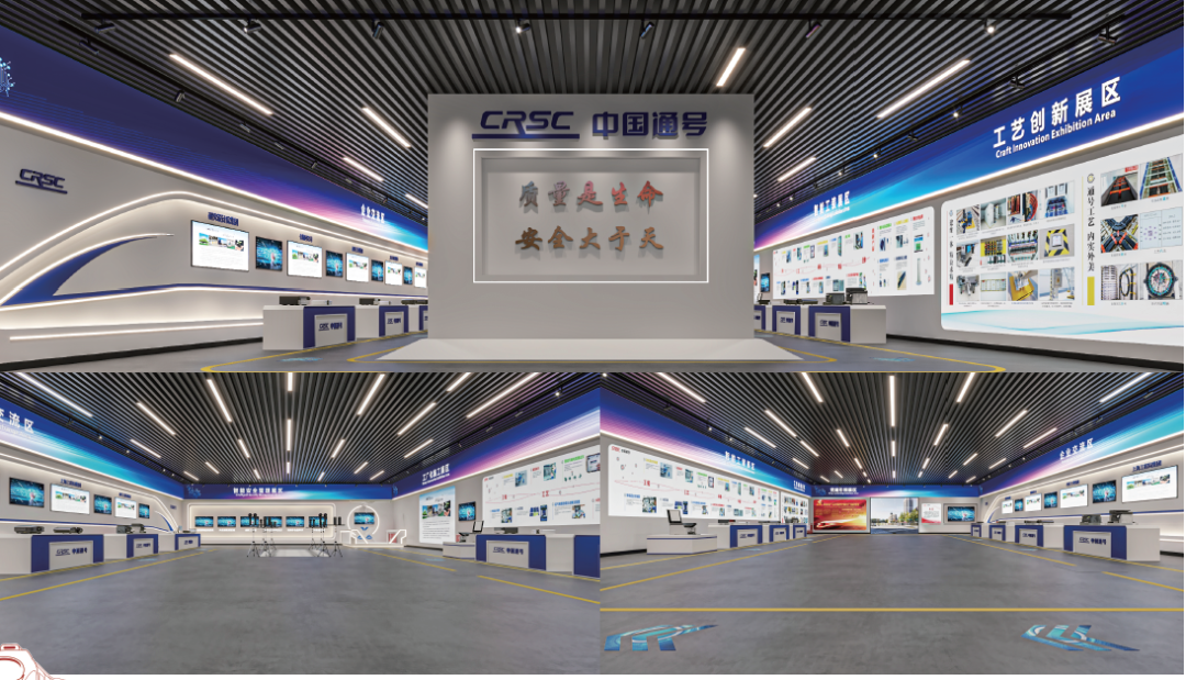 现场展厅设置6大区域,分别为企业交流区、智能安全管理展区、工厂化施工展区、智能工装展区、工艺创新展区、党建引领展区。