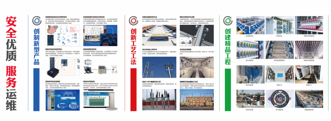 工艺创新展区:集中展示 6项创制新型产品,6项创新工艺工法,以及活动开展打造的连徐、拉林、朝凌、玉磨、鲁南、赣深、张吉怀、安九、杭绍台等10项精品工程标杆项目。