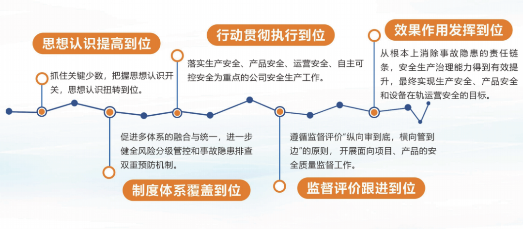 坚持将要求提实、将责任压实、将工作做实、将考核抓实的“四实”理念,通过动员部署、排查整治和集中攻坚三个阶段的扎实工作,安全生产责任体系更加完善,双重预防机制更加健全,安全生产标准化更加规范,安全生产信息化更加高效,安全运营更加可靠。