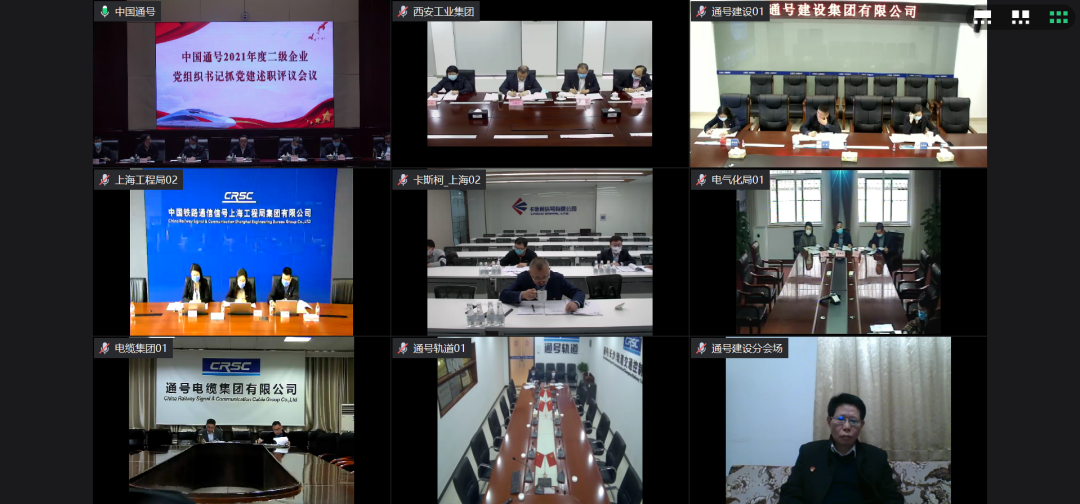 会议以视频形式召开,中国通号总师级领导,总部各部门主要负责人,各二级企业党委书记,专职党委副书记、党群工作部门负责人,基层党支部书记代表,群众代表在主会场参会;京外部分二级企业党委书记,党群工作部门负责人,党员群众代表在视频分会场参会。