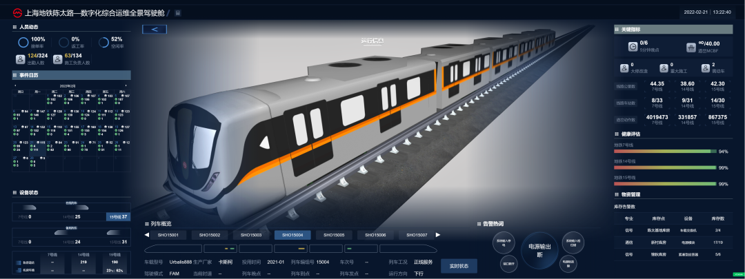 卡斯柯助力上海地铁在陈太路建成了数字化综合运维中心,逐步完善匹配超大规模网络的运维体系,构建运维数字化底座,赋能轨道交通数字化转型。数字化综合运维中心作为上海地铁生产体系的强大“中台”,高效连接“前台”线路工班与“后台”线网中心,打通维修一线与组织决策间的关键节点,通过业务数字化驱动生产模式转型,以数字业务化指导运维高效生产。