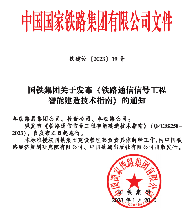新年伊始,中国通号所属二级企业通号工程局集团主编的中国国家铁路集团有限公司首批智能建造标准——《铁路通信信号工程智能建造施工技术指南》(Q/CR 9258-2023)正式发布,标志着铁路行业对智能建造水平等级出台了可量化的评价标准。