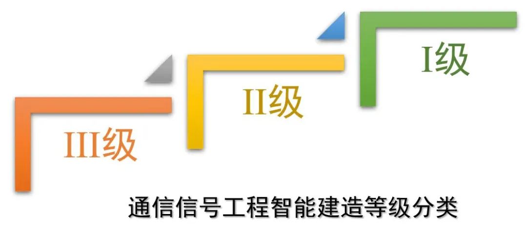 通信信号工程智能建造等级分为三级:I 级(最高级)、II 级、III 级。各工程项目宜根据建设目标、建设条件、工程特征、周边环境等项目特点确定整体智能建造等级,明确等级指标,并依据相应等级配置要求进行评估。