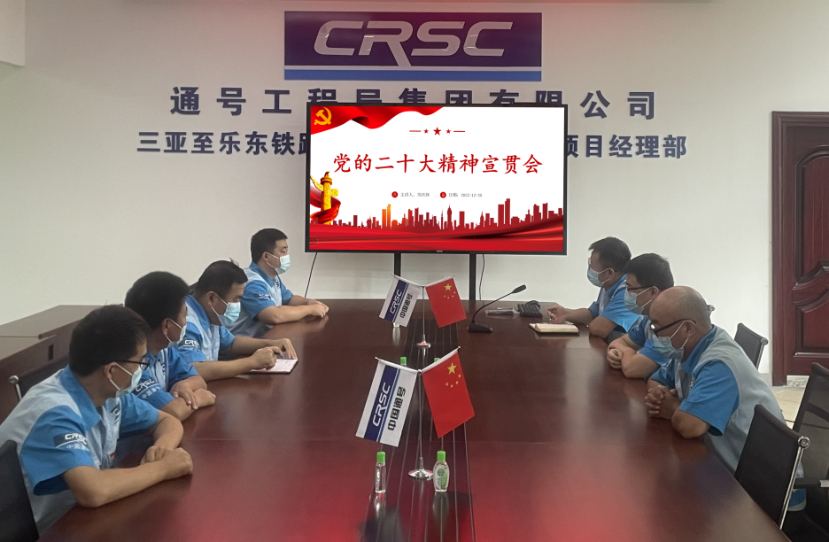 天津分公司三乐铁路参建项目部开展了党的二十大精神专题宣讲会,宣讲会以“中国式现代化全面推进中华民族伟大复兴”为主题,支部委员带领党员干部全面系统地学习了党的二十大报告原文。通过学习,激励全体党员主动学、持续学、全面学,坚持用党的二十大精神武装头脑、指导实践,切实把学习热情转化为推动工作的强大动力。