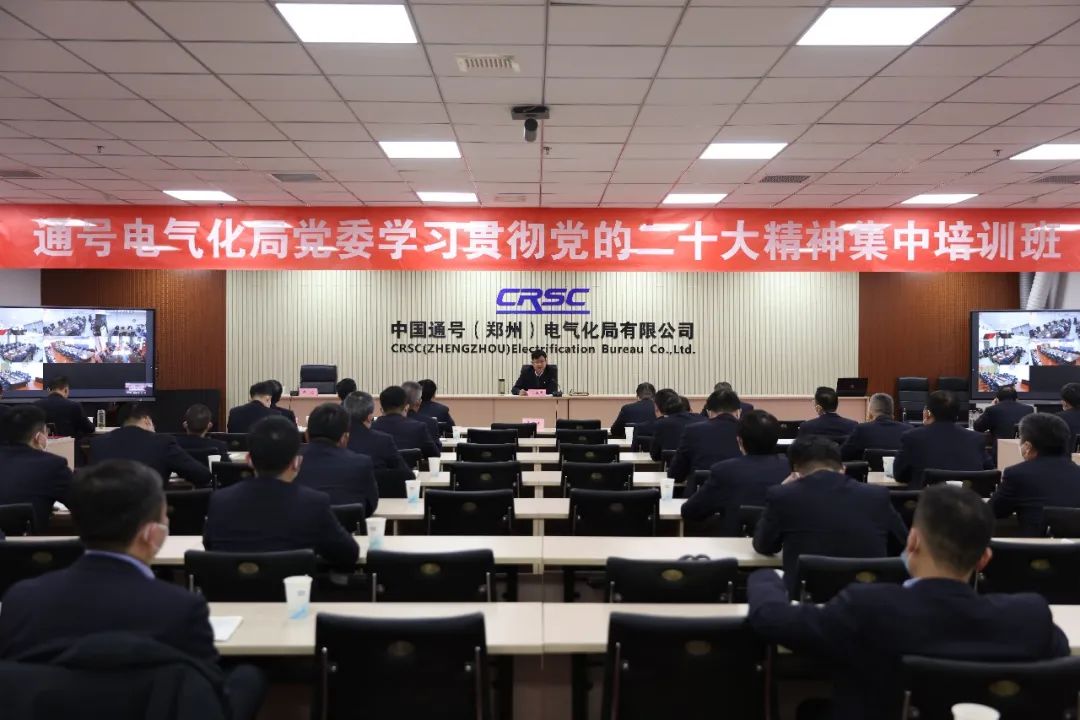 通号电气化局党委学习贯彻党的二十大精神集中培训班开班。两级领导班子成员、副总师、中层干部及机关工作人员共计200余人通过“现场+视频”形式参加了培训。本次培训班邀请到中国铁路郑州局集团有限公司党校基本理论教研室主任杨晖进行授课。杨晖主任通过生动鲜活的数据案例,结合教研工作经历,对学习贯彻党的二十大精神、当前经济及铁路行业发展形势进行了全面深入解读。