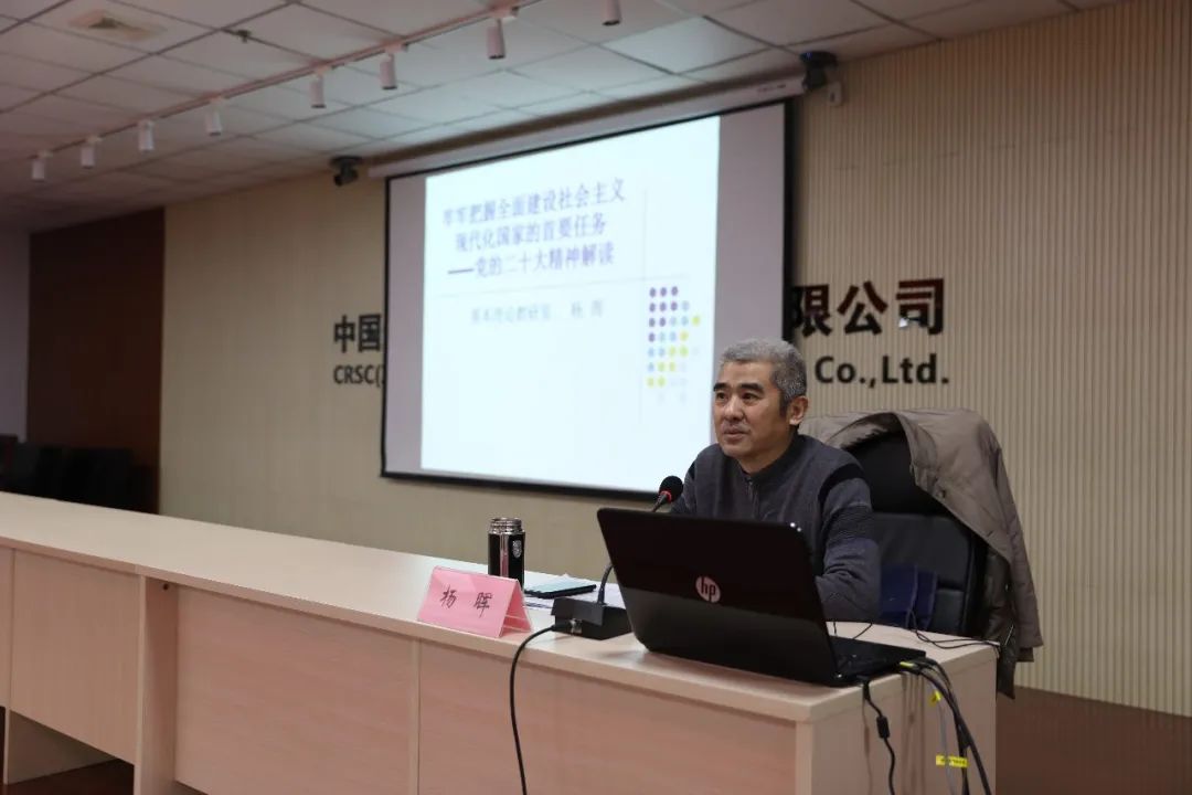 在随后进行的党的二十大精神宣讲课程上,通号电气化局党委书记、董事长马玉忠为党员讲授了一堂生动的党课。马玉忠在宣讲报告中充分阐述了党的二十大的重大意义,深入讲解了党的二十大精神,同时要求全公司上下要立足央企责任使命抓好“四个统筹”,以实际行动践行党的二十大精神。
