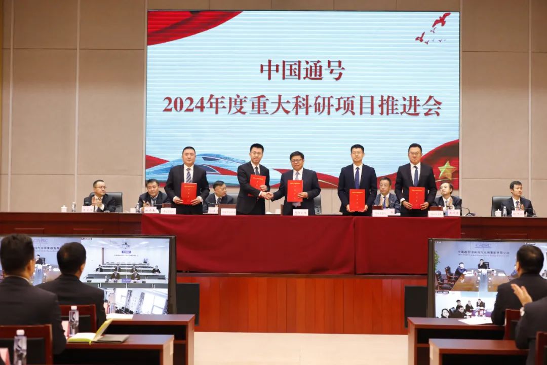 3月15日,中国通号召开2024年度重大科研项目推进会。会议以习近平新时代中国特色社会主义思想为指导,深入贯彻落实党的二十大精神,积极推进国务院国资委对于国资央企科技创新工作的重大部署,立足中国通号未来发展,全面部署2024年度科技创新重点工作,全力推动重大科研项目落实落地,以高水平科技自立自强助力中国通号高质量发展。中国通号党委书记、董事长、总裁楼齐良出席会议并讲话,中国通号党委副书记张权主持会议,中国通号领导班子成员李连清、赵晓东、姚希春、张志辉、万宝华出席会议。