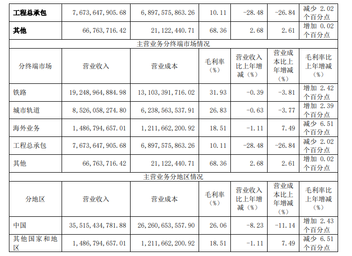 与此同时,公司也注意到国内轨道交通建设虽仍保持一定强度,但传统“四电”市场竞争加剧,市场空间受到挤压,高铁、城际铁路投资和建设模式趋于多元化,大型基建项目招投标呈现全专业总体总包化,城市轨道交通装备竞争形势日趋严峻,海外基础设施类建设受政治经济形势影响依然较大。
