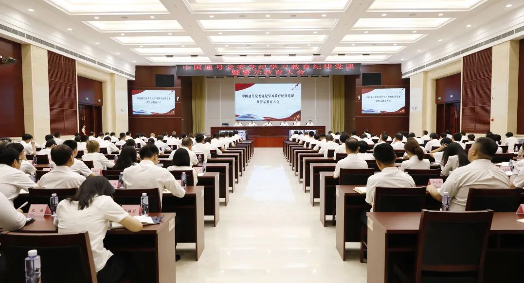 7月16日,中国通号党委举行党纪学习教育纪律党课暨警示教育大会,深入学习贯彻习近平总书记关于全面加强党的纪律建设的重要讲话精神,深化以案说德、以案说纪、以案说法、以案说责,教育引导中国通号广大党员干部遵规守纪,持续推动党纪学习教育走深走实,为中国通号增强核心功能、提高核心竞争力,更好发挥科技创新、产业控制、安全支撑作用提供坚强纪律保障。中国通号党委书记、董事长、总经理楼齐良以“严明纪律强党性,永葆初心践使命,为高质量发展营造风清气正的干事创业氛围”为主题讲授纪律党课,党委副书记张权传达了习近平总书记关于全面加强党的纪律建设的重要论述,党委常委、纪委书记姚希春通报剖析集团违纪典型案例,党委领导班子成员李连清、赵晓东、万宝华出席会议。
